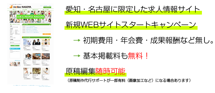 求人サイト新規スタートキャンペーンにつき掲載料金、初期費用、年会費、成果報酬等は一切必要ありません。